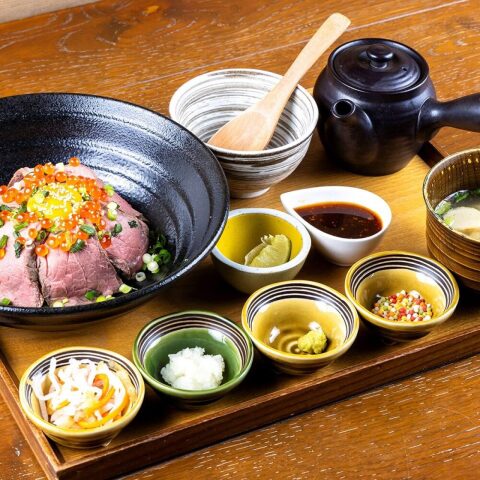 ローストビーフ×いくらの贅沢丼。 お肉といくらに卵黄を絡めて満足感のある贅沢な一杯。 そのまま味わうのはもちろん、香ばしいほうじ茶をかけて、お茶漬けとしてもお楽しみいただけます。 一度で二通りの味わいを堪能できる贅沢な一品。 ぜひご堪能ください。 *メニュー* 🔸贅沢!ローストビーフいくら丼 1,848円(税込) ※画像はイメージです